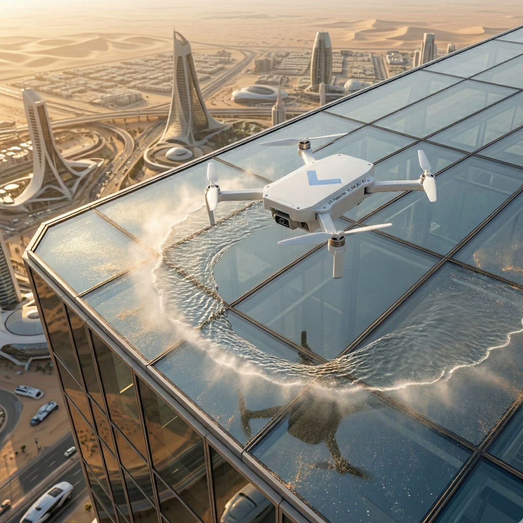 Removes residual water films after drone spraying operations, leaving surfaces clean and streak-free without manual labor.